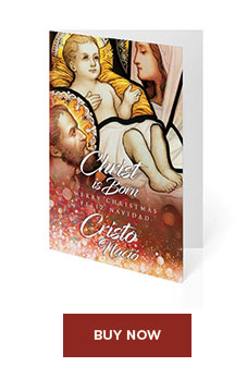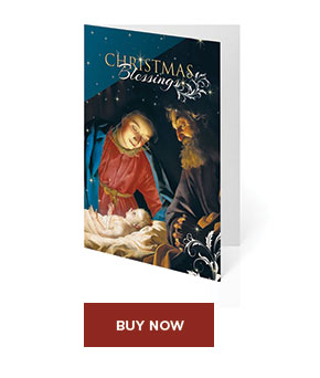 Personalize your Christmas card by adding custom text to both sides of the Interior. This is a great way to promote the special Christmas schedule on the left and custom prayer or message from Father on the right.