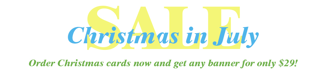 We know you are busy. Especially during this time of year. Order your Christmas cards now, and get any banner refill for ONLY $29! OR, a banner and stand for ONLY $129! (banner must be be purchased at the same time as Christmas cards to get the discounted price)