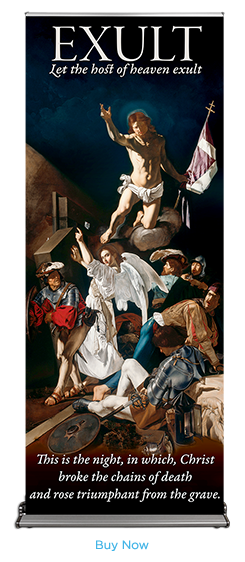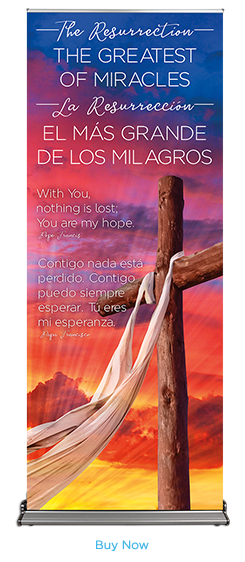 Standing at 7’ tall, the banners will keep parishioners engaged and adorn any area of the church. Encourage people to come inside with an A-Frame. And complete the message with a bulletin cover and prayer card!