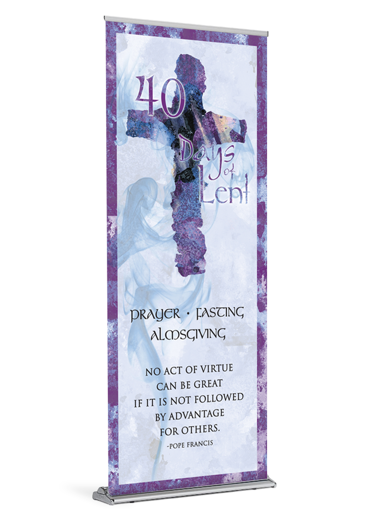 The Holy Father reminds us that our Lenten practices are empty if we do not serve the least of these among us. Let this banner be the prayer and action for your parish community this Lenten season.