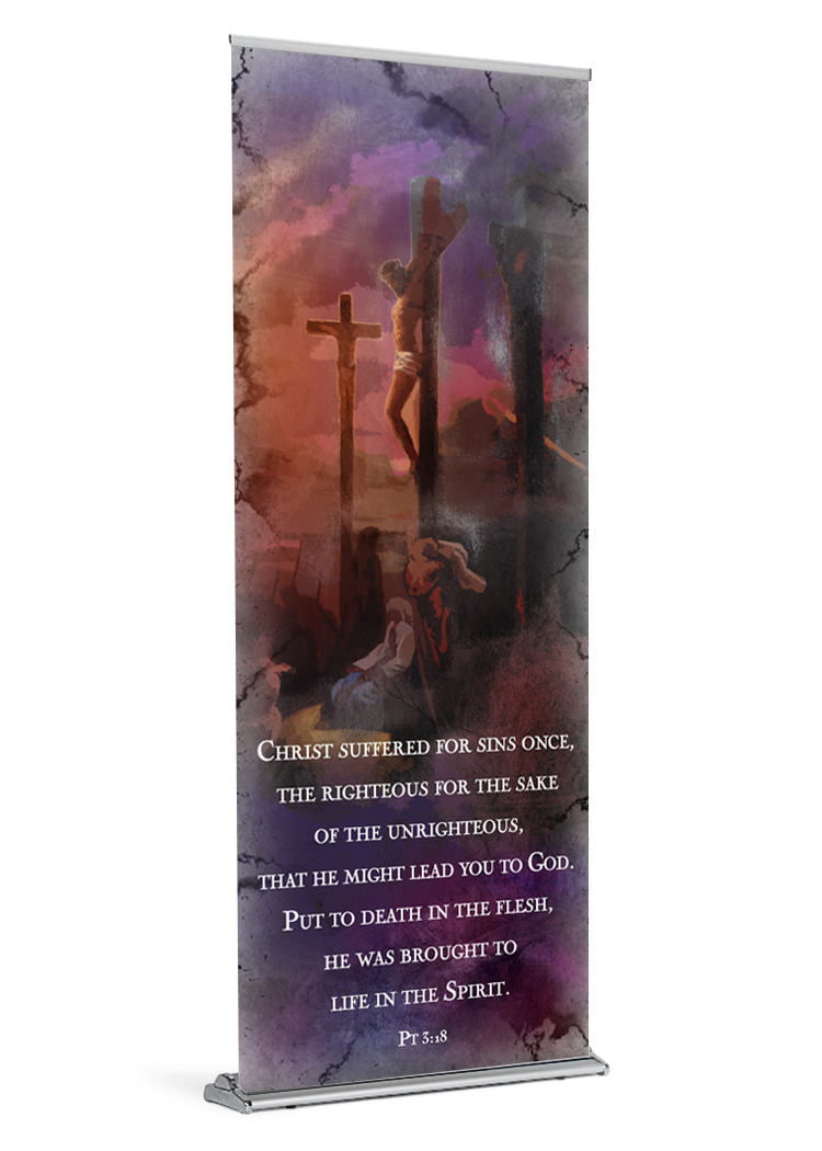 If you ordered a banner with your stand the banner will come installed and ready be displayed. All you need to do is insert the pole and pull the banner up. If your parish already owns a stand, your banner will arrive with a bottom rail that is quick and easy to slide into your stand.
